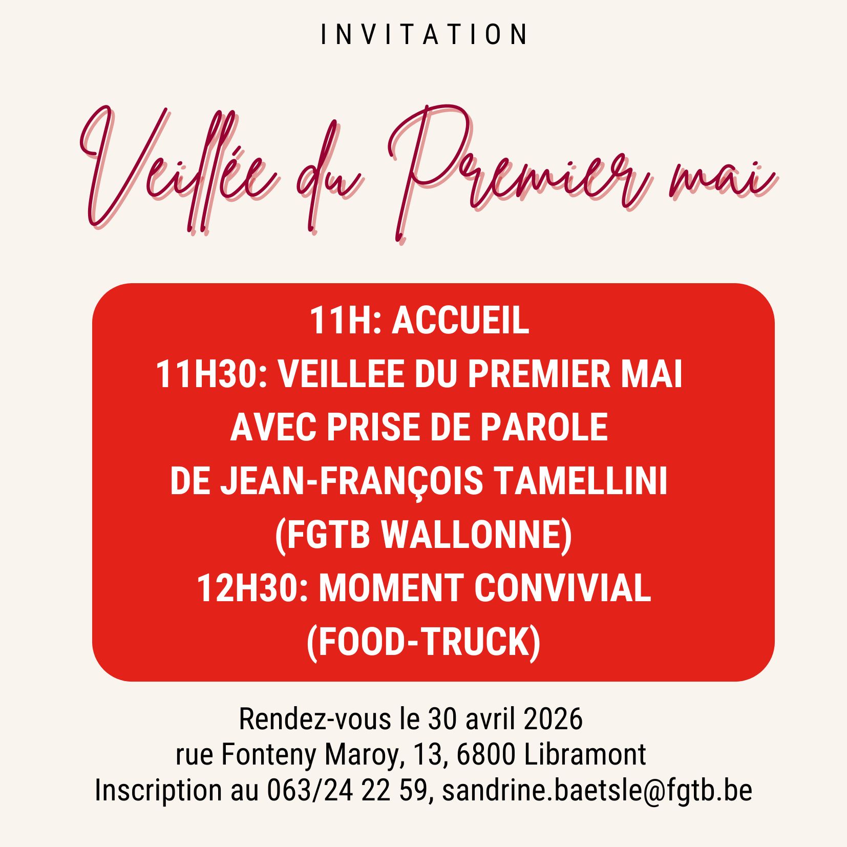 Inscriptions : sandrine.baetsle@fgtb.be ou 063/24 22 59