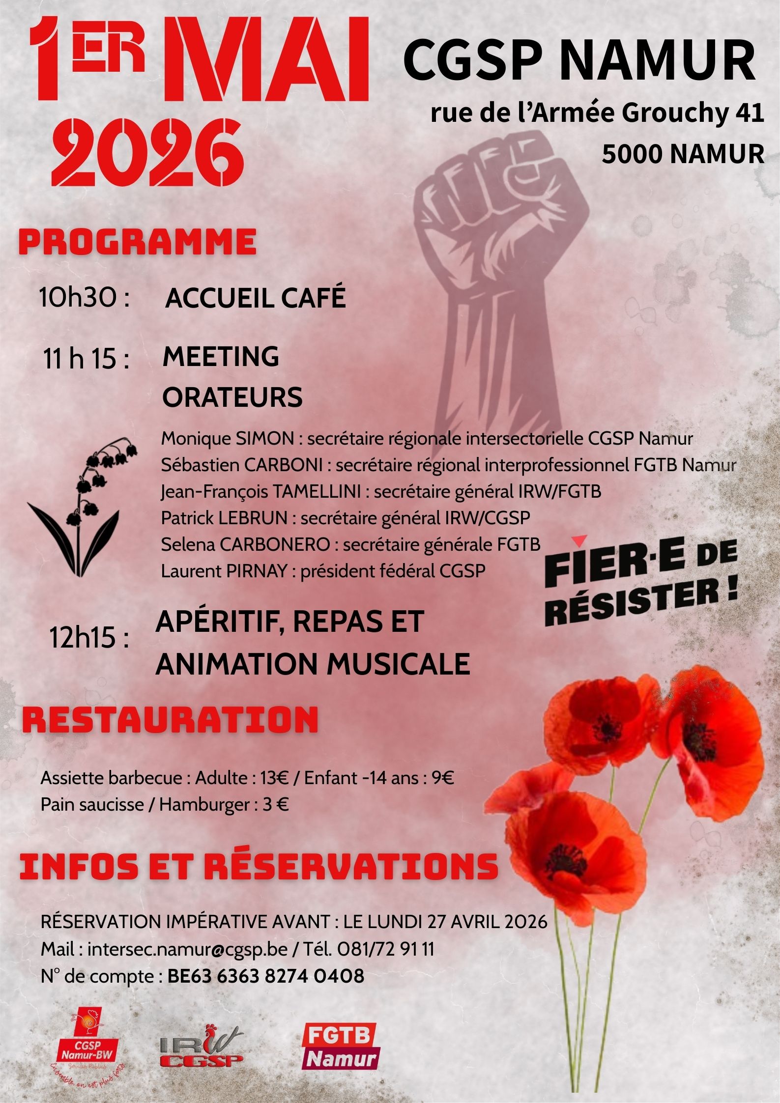 Lieu : RDV à CGSP Namur, Rue de l’Armée Grouchy, 41 Namur.